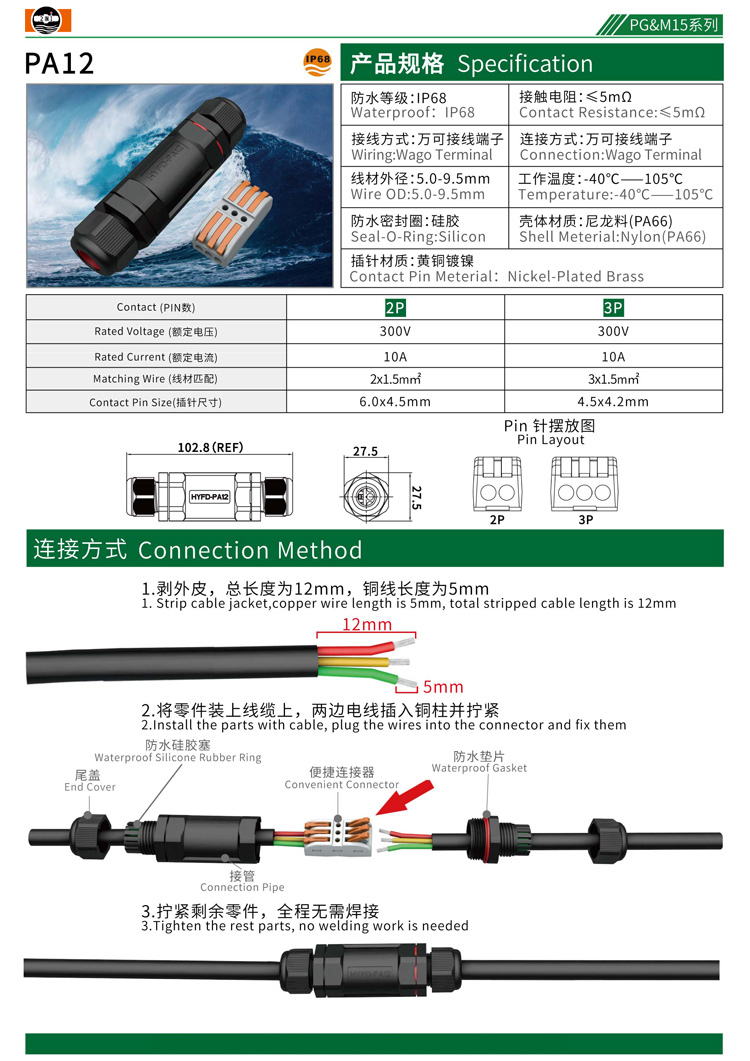| ລະດັບສາຍ | 0.08-4.0 mm² (28-12 AWG) |
